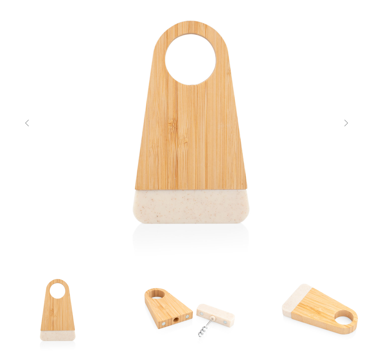 Elegante soporte de bambú que incluye un abridor de botellas elaborado en fibra de paja de trigo. Ambos elementos se mantienen unidos gracias a un imán integrado.